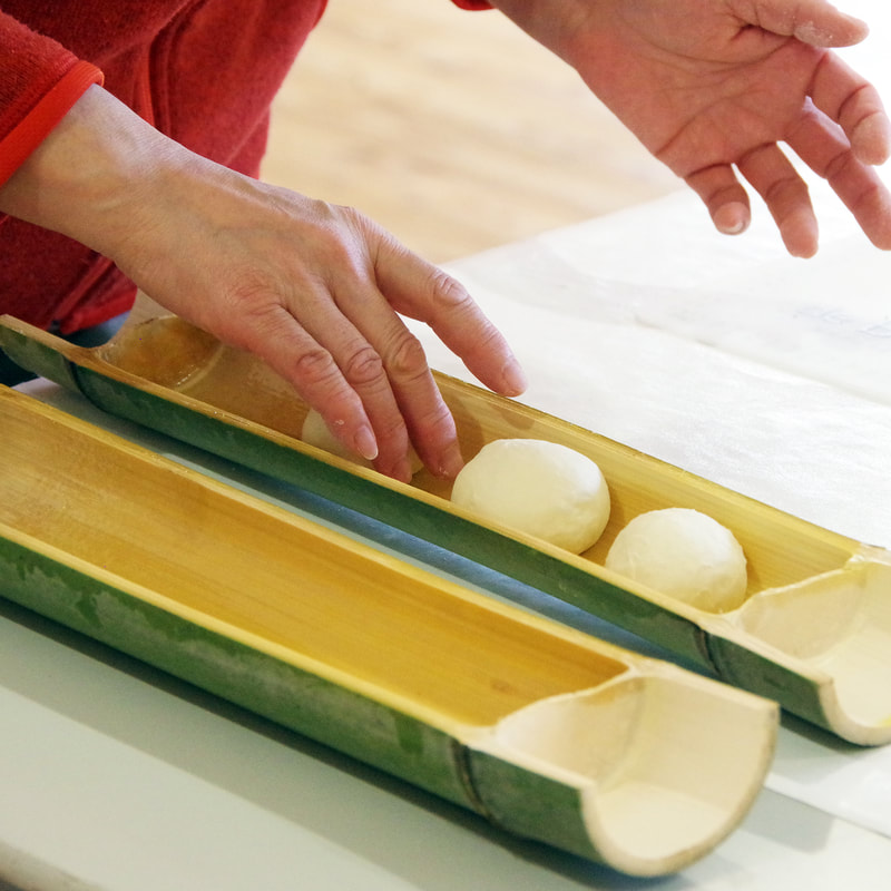 一方、伐採した竹を使って食器や調理道具を作って、竹で調理もできるのです。竹筒でごはんを炊いたり、パンを焼いたり。あるいは、お鍋として、食器として、串焼きの串としてなど、さまざまな用途に活用できるのです。