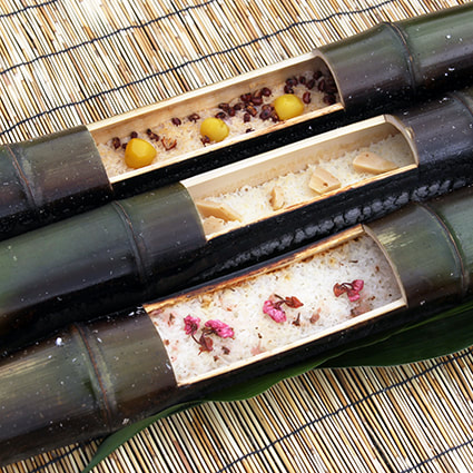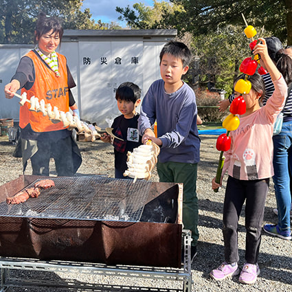 一方、伐採した竹を使って食器や調理道具を作って、竹で調理もできるのです。竹筒でごはんを炊いたり、パンを焼いたり。あるいは、お鍋として、食器として、串焼きの串としてなど、さまざまな用途に活用できるのです。