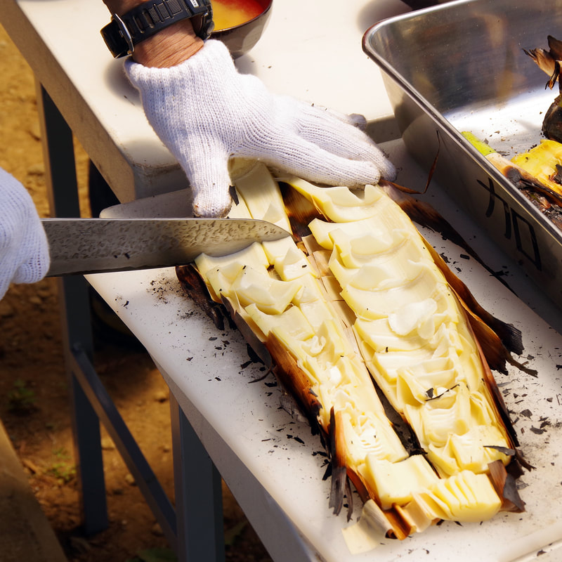 整備された竹林には日があたり、風が通り、竹にとって良好な環境になります。すると、春先にはニョキニョキとタケノコが頭を出します!定期的にタケノコ掘りをすることも、竹林の整備につながっているのです。タノシク・オイシク役にたつ!また、皆さんがよくご存知のタケノコは「モウソウチク」という竹の種類になりますが、「マダケ」という種類の竹のタケノコも美味しくいただけます。これはちょっと変わった方法で収穫するのです。