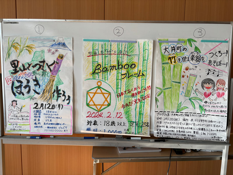 ~荒廃竹林の竹を切り出して、竹楽器を作ろう!~ 日時:10/12(土) ※雨天予備日は10/13(日) 会場:大井町内の荒廃竹林 費用:5,500円(大人・小人同額) ※小人は小学生以上、プログラム体験費用、昼食代、保険代含む 集合:大井町農業体験施設「四季の里」 内容: 9:30-四季の里集合→10:00-竹林にて竹切り出し体験→11:30-ジビエ肉のBBQ→13:00-竹楽器作り体験→15:00-四季の里にて解散 定員:40名(先着順) 荒廃竹林の竹を使って作った竹楽器で、6月に行われたホームゲームにて地元プロサッカーチームを応援しました! 申込:受付を締め切りました |