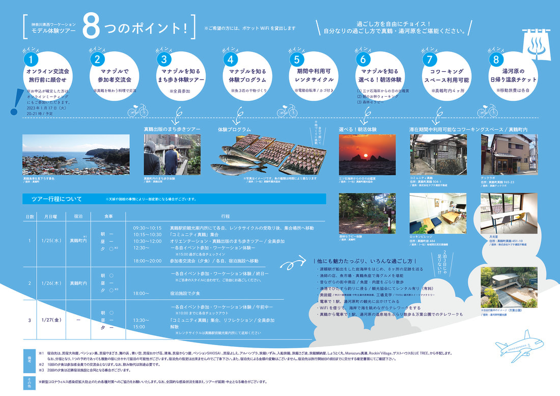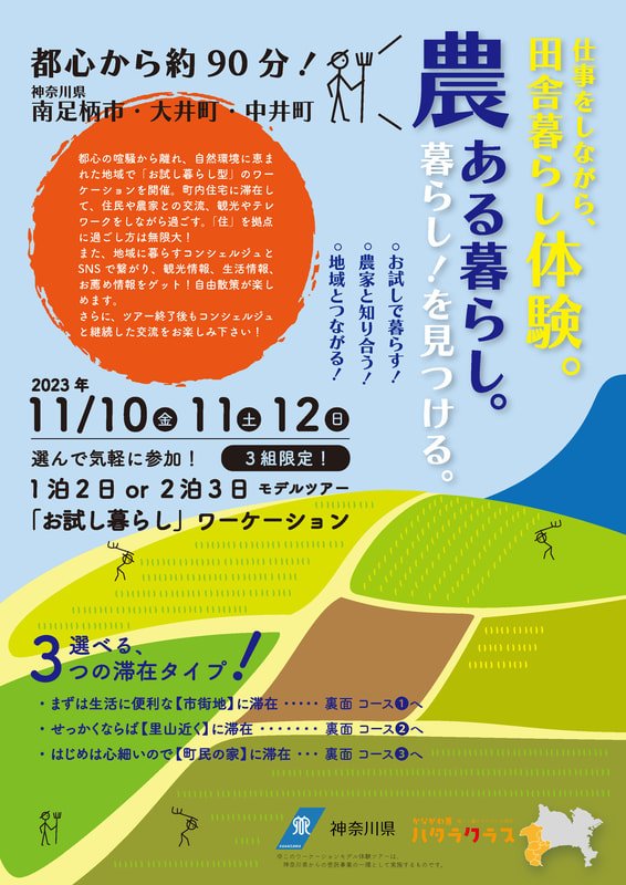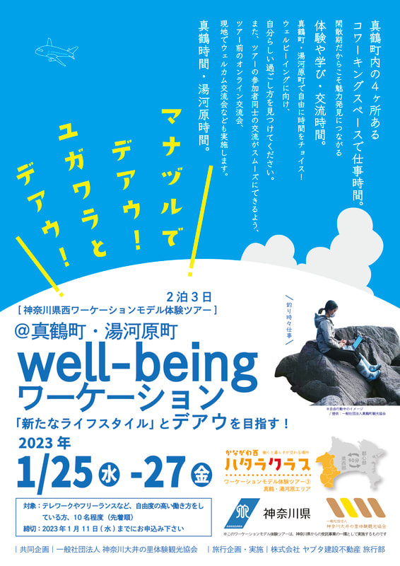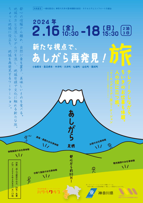 神奈川県の県西地域(2市8町)における「広域ワーケーション」のモデルづくりをおこないました。県西地域の「住居」と「仕事」をテーマとした2ツアーを造成。
