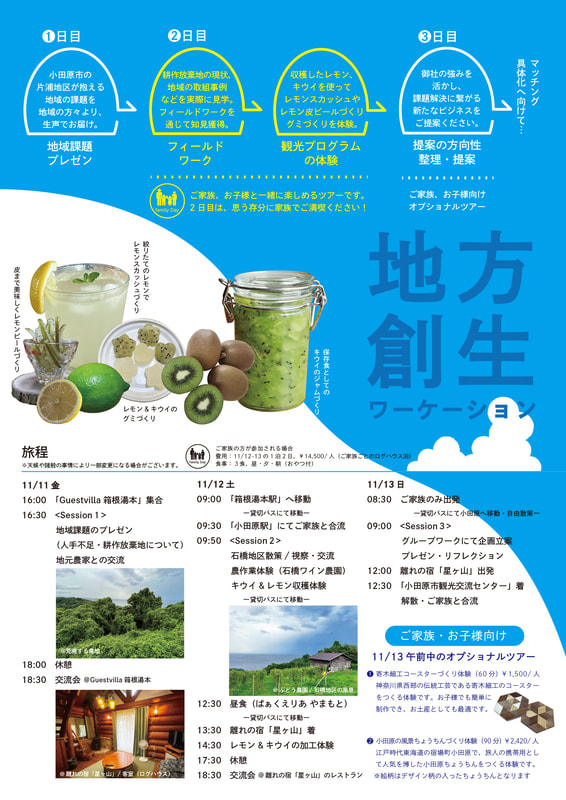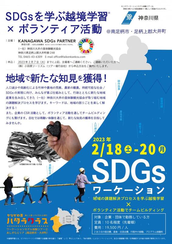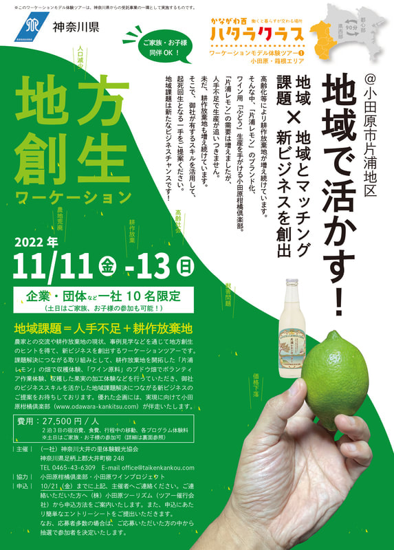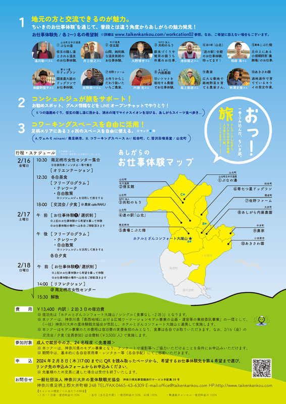 神奈川県の県西地域(2市8町)における「広域ワーケーション」のモデルづくりをおこないました。県西地域の資源を活かした異なる3ツアーを造成。